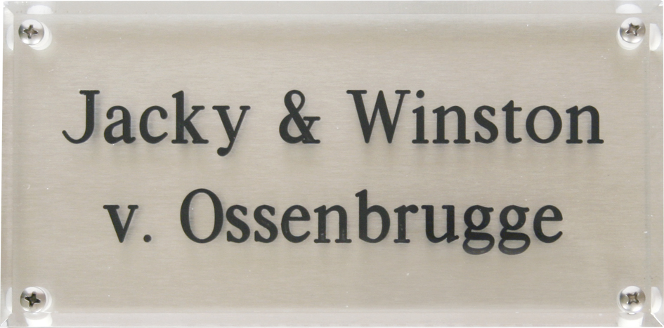 Glaslook is geen glas (glas is uiteraard erg breekbaar), maar een luxe en tegelijk stevige kunststofsoort (8 mm dikte) met de uitstraling van glas. Het materiaal is dan ook volledig doorzichtig en verkrijgbaar in verschillende kleurvarianten. Glaslook is uitstekend geschikt voor gebruik in en rondom uw woning. De tekst wordt in alle glaslook-naamborden gegraveerd, waardoor uw naam niet weg kan slijten of vervagen. Het bijzondere aan glaslook is dat het aan de achterzijde ingegraveerd wordt, dit in tegenstelling tot andere kunststofsoorten. Hierdoor blijft het materiaal aan de voorzijde glad en krijgt het een zeer luxe uitstraling. Tot slot: Glaslook wordt geleverd met afstandbusjes waardoor u het naambord eenvoudig op een korte afstand van de muur kunt monteren. Glaslook een zeer exclusieve kunststofsoort dat tegen een stootje kan!