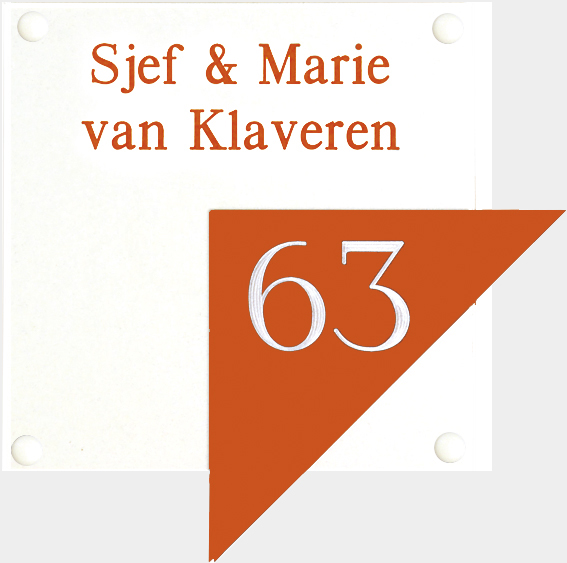 Gravoglas is een luxe en tegelijk stevige kunststofsoort (3 mm dikte), met de uitstraling van gekleurd glas, welke uitstekend geschikt is voor gebruik in en rondom uw woning. De tekst wordt in alle gravoglas-naamborden gegraveerd, waardoor uw naam niet weg kan slijten of vervagen. Het bijzondere aan gravoglas is dat het aan de achterzijde ingegraveerd wordt, dit in tegenstelling tot andere kunststofsoorten. Hierdoor blijft het materiaal aan de voorzijde glad en krijgt het een hele luxe uitstraling. Tot slot: de gravoglas-naamborden zijn standaard voorzien van schroefgaten (tenzij anders vermeld) en worden geleverd met afstandbusjes en afdekdopjes waardoor u het naambord eenvoudig op een korte afstand van de muur kunt monteren.