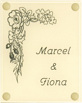 Gravoglas is een luxe en tegelijk stevige kunststofsoort (3 mm dikte), met de uitstraling van gekleurd glas, welke uitstekend geschikt is voor gebruik in en rondom uw woning. De tekst wordt in alle gravoglas-naamborden gegraveerd, waardoor uw naam niet weg kan slijten of vervagen. Het bijzondere aan gravoglas is dat het aan de achterzijde ingegraveerd wordt, dit in tegenstelling tot andere kunststofsoorten. Hierdoor blijft het materiaal aan de voorzijde glad en krijgt het een hele luxe uitstraling. Tot slot: de gravoglas-naamborden zijn standaard voorzien van schroefgaten (tenzij anders vermeld) en worden geleverd met afstandbusjes en afdekdopjes waardoor u het naambord eenvoudig op een korte afstand van de muur kunt monteren. Gravoglas een zeer luxe kunststofsoort dat tegen een stootje kan!
