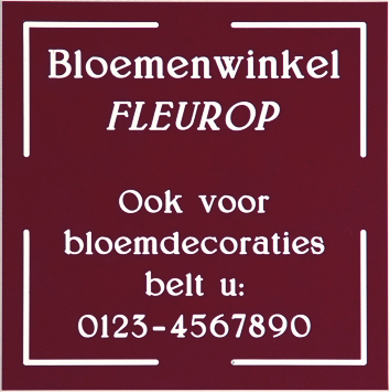 Het kunststof dat gebruikt wordt is een harde soort plastic (standaard 1,6 mm dikte), welke uitstekend geschikt is voor gebruik in en rondom uw woning. De tekst wordt in alle kunststofnaamborden gegraveerd, waardoor uw naam niet weg kan slijten of vervagen. De kunststofnaamborden bestaan uit twee kleuren: een onderliggende grondkleur en een bovenliggende topkleur. Wanneer uw naam in het naambord gegraveerd wordt, wordt de topkleur weg gegraveerd en verschijnt uw naam in de onderliggende kleur. Kunststof wordt standaard met een zelfklevende plaklaag geleverd. Daarmee kan het op vrijwel elke vlakke achtergrond gemakkelijk bevestigd worden. Het is echter niet geschikt om op een stenen of andere ongelijke achtergrond te bevestigen! Kunststof: eenvoudig en toch uniek!