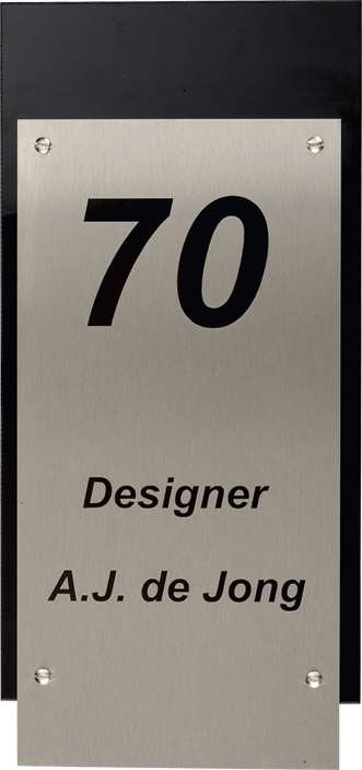 RVS is een zeer sterke staalsoort, welke uitstekend geschikt is voor gebruik in en rondom uw woning. RVS staat voor roest-vast-staal en is daardoor bijzonder weersbestendig, maar niet geheel vrij van onderhoud. Daarom dient uw RVS-naambord af en toe met HG snelglans (te verkrijgen bij de doe-het-zelf vakman en/of bouwmarkt) behandeld te worden. Het is niet verstandig de RVS-naamborden te poetsen, doordat de tekst op alle RVS-naamborden beletterd wordt; zo kan de tekstlaag niet beschadigen of vervagen, indien u geen belettering wenst, dient dit aan te geven in de opmerkingen, wij voorzien dan het naambord van een lasergravure, deze is altijd antraciet/zwart. Tot slot: alle RVS-naamborden worden standaard geleverd met RVS-bevestigingsmateriaal om zo oxidatie bij de schroefgaten tegen te gaan. (N.B. Bovenstaande geldt ook voor alle aluminium en RVS-look naamborden 1400/1500 serie met de uitzondering dat deze naamborden standaard zonder schroefgaten, maar zelfklevend geleverd worden). RVS uniek materiaal, geschikt voor allerlei stijlen, dat tegen een stootje kan!